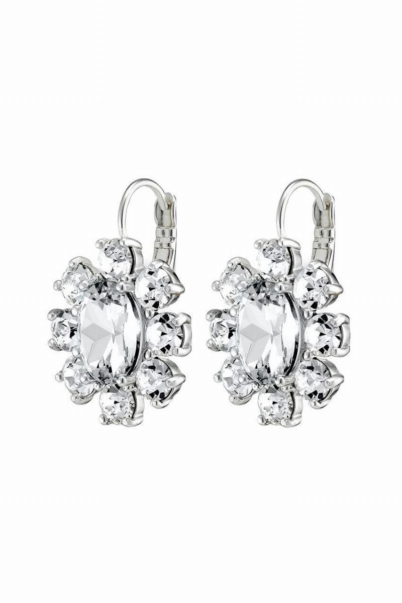 Øreringene prydes af et smukt ovalt vedhæng, der er fremstillet af facetteret krystalglas. Det glitrende glas fanger lyset på en magisk måde og tilføjer en ekstra dimension til dit look. Omkranset af en delikat række af mindre sten i kontrastfarve, giver disse øreringe et unikt og iøjnefaldende udtryk. Den lette fatning sikrer, at de sidder komfortabelt hele dagen lang, så du kan bære dem fra morgen til aften uden problemer.