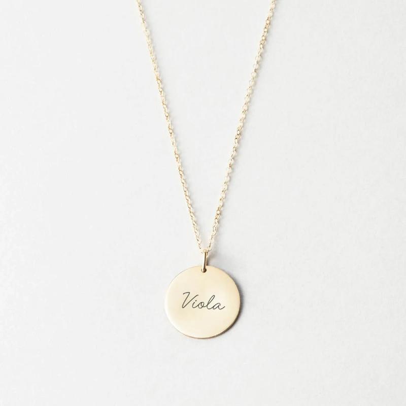 Forestil dig et elegant rundt smykke, der glitrer på din hals og fanger blikket hos alle omkring dig. Det, der gør dette smykke helt særligt, er muligheden for at få indgraveret et håndskrevet navn – måske navnet på en elsket, en særlig dato eller et ord, der betyder noget for dig. Denne personlige touch gør hvert stykke til en unik skabelse, som ingen andre har.