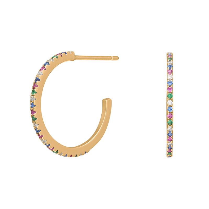 Noa ørestikkerne er designet med omhu og sans for detaljen. De forgyldte creoler er lavet af høj kvalitet sølv, hvilket sikrer holdbarhed samt en skøn glans, der fanger lyset på den mest fantastiske måde. Med en diameter på 18 millimeter sidder de perfekt på øret og tilføjer lige det rette touch af farve og glamour til enhver påklædning.